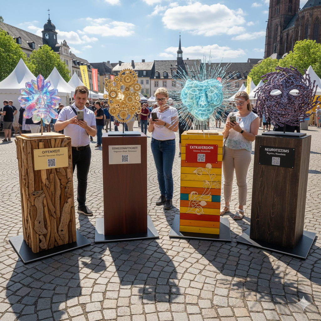 Dieses Ausstellungsstück setzt sich mit der Vielfalt unterschiedlicher Persönlichkeiten auseinander. Es besteht aus fünf eigenständigen digitalen Skulpturen. Diese Skulpturen werden in der analogen Welt lediglich durch einen Sockel repräsentiert. Jeder Sockel verfügt über einen QR-Code, welcher beim Scannen auf eine Webseite verweist. Diese zeigt dann die jeweilige Skulptur auf dem Sockel an.